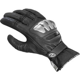 The perfect glove for summer!Comfort/features:Knuckle mouldSide of hand and ball of thumb reinforced with cowhideBack and thumb fully lined with AramidBall of thumb and finger joints reinforced with SuperFabric brand material (32% polyester, 68% epoxy resin)Special step seam to avoid any feeling of pressurePerforated leather panels for greater breathabilityReflective trimVelcro fastener for cuff width adjustmentMaterial:Back made of airy mesh (100% polyester)Lower glove made of abrasion-resistant, colour-fast and sweatproof kangaroo leatherLower glove unlined